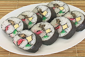 (かんぴょうは、半日位水につけ、塩でもみ、30分ほどゆでたものを使用。)